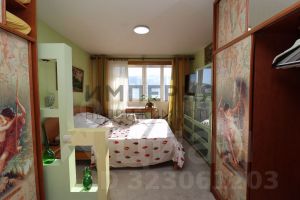В квартире сделана перепланировка за счет которой, кухня и комната совместились.