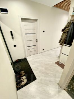 В квартире сделан свежий, качественный, капитальный ремонт: полностью заменена электрика на медную, заменена вся сантехника, в ванной и туалете уложен кафель (полы с электронным подогревом), во всей квартире выровнен пол, на полу уложен ламинат, натяжные потолки, установлена надежная входная дверь, ремонту пару лет, состояние нового, все делалось для себя.